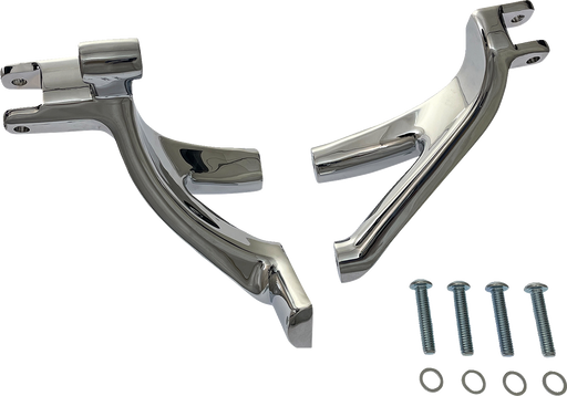 Forward control foot support bracket includes hardware Sold in pairs Featuring chrome or gloss black finish
