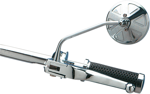 Features flat tinted mirror head with 6 in. stem for drag or custom type bars