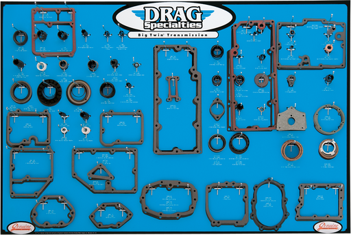View full detailsComplete four-color display features gaskets, seals and O-rings necessary to rebuild most four- or five-speed Big Twin transmissions Displays...