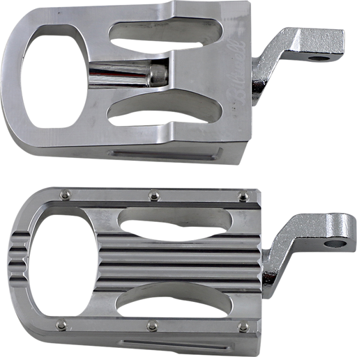 View full detailsAdjustable foot pegs constructed with CNC-machined billet 6061 T-6 aluminum Investment-cast 4130 chromoly clevises with 5/16-18 t.p.i. Allen...