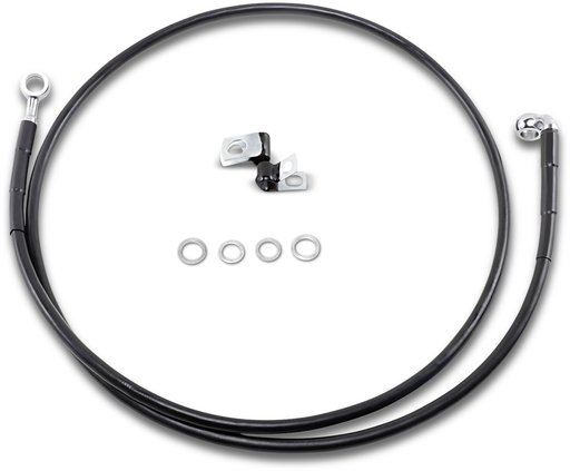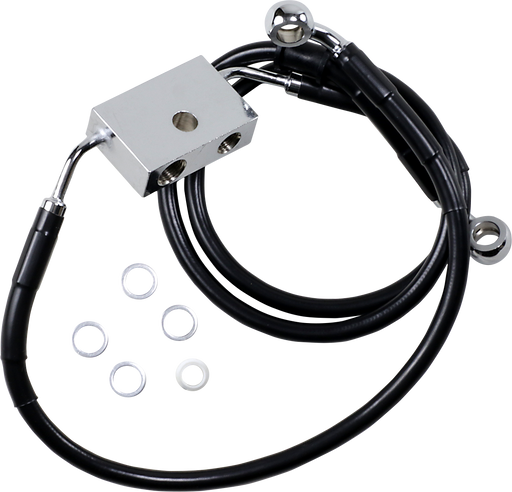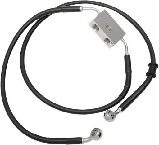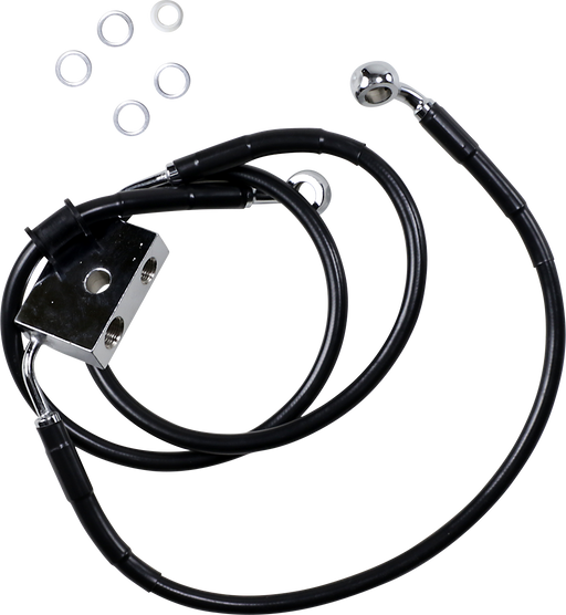 Features black vinyl-coated braided extended lines with chrome steel fittings Made in the U.S.A. All measurements are approximate.
