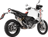 - Muffler constructed of lightweight titanium and finished with a handmade designed carbon fiber heat shield and end cap, with an imprinted muffler