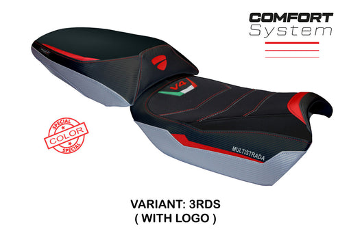 Ducati Multistrada V4 2021-2024 Heated Seat Cover Tappezzeria Italia in White and Red