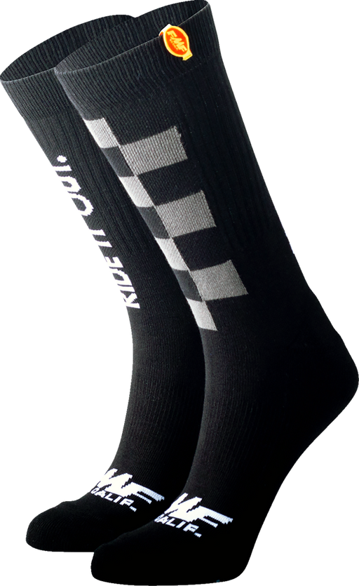 View full detailsChecker pattern and Ride it Out wording knitted in socks FMF woven label on top of socks Content: 73% Cotton/ 13% Polyester/ 10% Nylon/ 4% ...