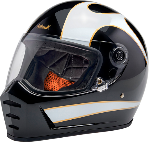 BILTWELL Lane Splitter Helmet - Gloss Black/White Flames - Large 1004-570-504