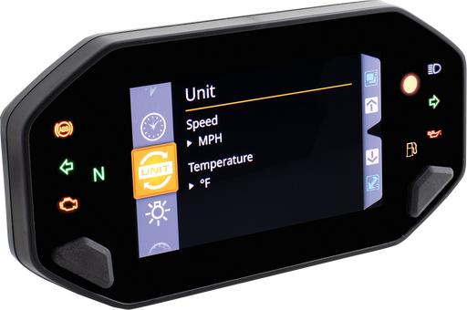 View full detailsEight color changeable LCD display Measures speed (0-225 mph/0-360 km/h), rpm, fuel meter, indicator lights and gear position Measures 3.3" d...