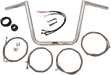 • Stainless braided handlebar kits include handlebar, wire extensions, stainless braided clutch lines, brake lines, chrome "T" brake line junction, banjo bolts, fittings and copper crush washers