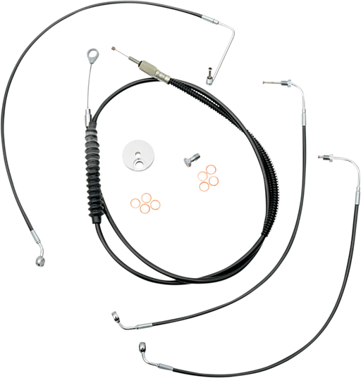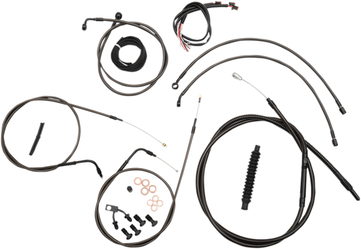 View full detailsKit includes the correct length braided brake/clutch lines and wire extensions to complete a handlebar swap Black "T" brake line junction, ba...