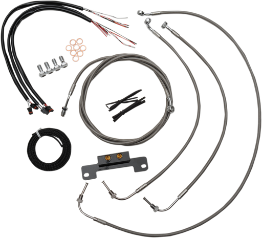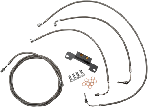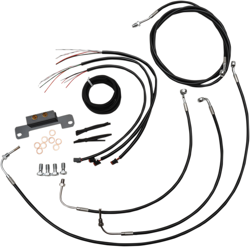 View full detailsKit includes the correct length braided brake/clutch lines and wire extensions to complete a handlebar swap Black "T" brake line junction, ba...