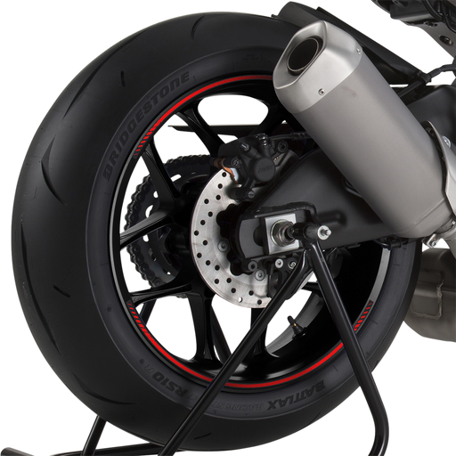Set of eight adhesive rim strips Made of semi-rigid lenticular PVC for 14" to 21" rims Features an on-off placement and removal due to special g...