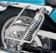 - Chrome-plated steel brackets hold throw-over saddlebags away from brake caliper and swingarm