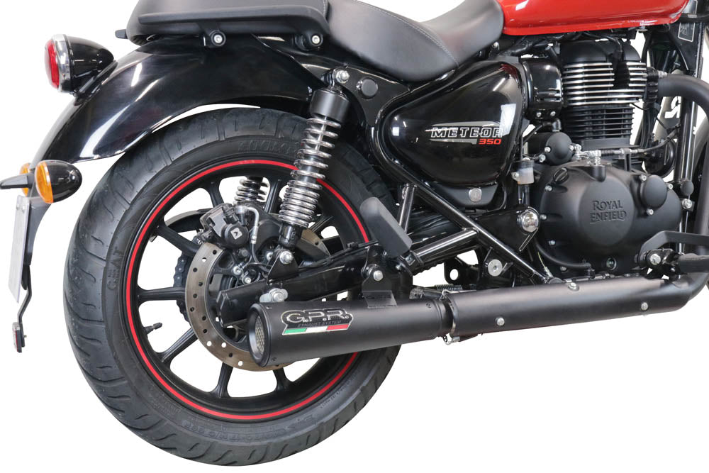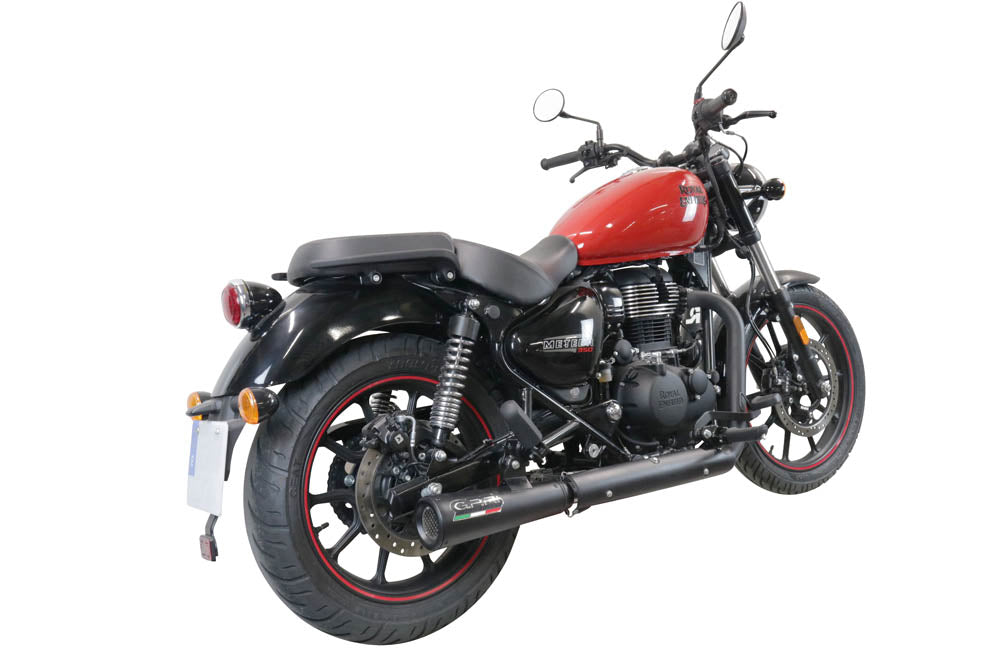 GPR Exhaust System Royal Enfield Meteor 350 2021-2023, Hurricane Nero, Slip-on Exhaust Including Link Pipe
