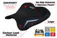 Experience a revolution in motorcycle seating with Tappezzeria Italia Comfort Seat Covers. These seat covers, while utilizing the same high-quality materials as our standard versions, feature a game-changing addition - a specialized 1-inch (2.3 cm) memory foam layer seamlessly integrated into the cover itself. No need for separate gel inserts; it's all included.